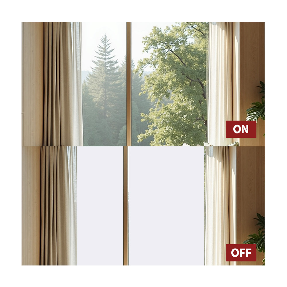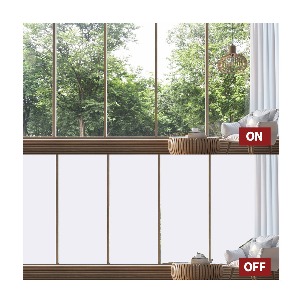 There is also a leggero miglioramento dell'isolamento thermalo (valore U ridotto) in entrambi gli stati. Another crucial benefit in UV protection: the major part of the PDLC film is a block of 99% of the UV-A and UV-B rays, which protects the skin, protects it, the art and the skin are protected and protected. The applicability comes from the adhesive film on the existing windows (retrofit) which provides a solution that can be accessed by transforming the finest standard in the smart glass and cost-effective components.