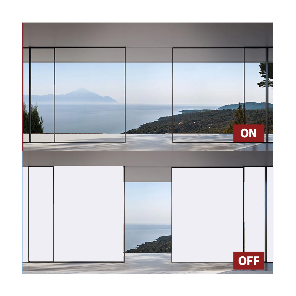 When applied to the external electrical panel, the electrical panel is in the form of a transparent ITO film and the liquid crystal molar is available in the direction of the electrical panel. When the light is visible, the incident occurs vertically at the back of the glass and the transparent film of ITO, indicating the interface between the glass and the polymer. The direction is not perpendicolare all the direction of propagation of the light and is not uguale on np, the glass is transparent. Sotto il profile dell'efficienza energetica, lo state opaco diffonde e riflette una parte sostanziale della radiazione solare infrared (IR), riducendo significativamente il guadagno di heat estivo all'interno degli edifici e, di conseguenza, il carico sui sistemi di condizionamento. There is also a leggero miglioramento dell'isolamento thermalo (valore U ridotto) in entrambi gli stati.