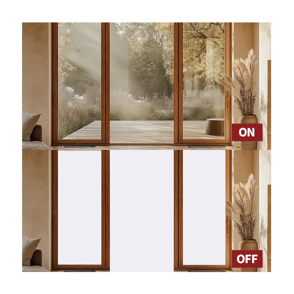 Rispetto ad altre tecnologie di vetro dinamico, come l'elettrocromico (EC) or i dispositivi a particelle sospese (SPD), the PDLC is distinguished by the rapid communication (meno di sendo), the capacità di raggiungere un'eccellente opacità nello stato OFF, un consuming energetico molto basso (solo durante la commutazione) and a costo generalmente più accessible. This is the best option when the priority is given to the passage of privacy and opacity/privacy. The security is also a priority. Contribuendo alla riduzione del fabbisogno energetico per il raffrescamento estivo e massimizzando l'utilizzo della naturale luce, the PDLC supportsa gli obiettivi di edilizia sostenibile. I produce special environmental certifications for my loro products. The sfide attuali includes the costo initial (sebbene in calo) rispetto a soluzioni.I vantaggi offerti dalla tecnologia PDLC sono molteplicaci e significativi. The key is obvious and the control of the data protection and reversibility of the privacy: with a simple command (interruttore, telecomando, app mobile or sistema domotico integrated) è possible passare dalla piena trasparenza alla completa privacy.